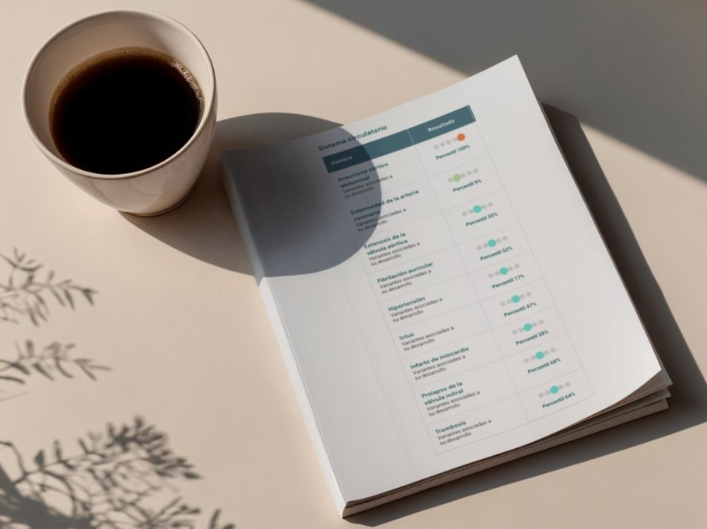 Al integrar tu información genética con tus antecedentes y analíticas, es posible crear un plan de seguimiento a largo plazo (nutrición, ejercicio, control hormonal, salud cardiovascular, salud cerebral, etc), centrado en modular tu riesgo, reducir la probabilidad de enfermedad y mantener tu calidad de vida muchos años más.
